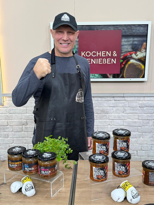With practical pockets for tools, spices, and accessories, as well as a cool, sporty fit, the Axel Schulz grill vest offers you both comfort and freedom of movement, so you can fully concentrate on your grilling pleasure. The timeless design combined with high-quality workmanship makes it a real eye-catcher – not only at barbecues, but also on cozy evenings in the garden.
