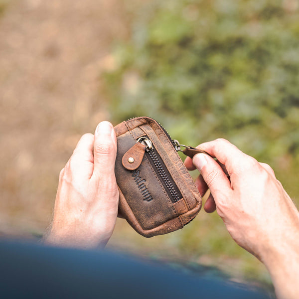 Unsere Lederwaren bestehen aus hochwertigem, robustem Büffelleder, das von Natur aus wasserabweisend ist. Leichter Regen macht ihnen nichts aus, jedoch sind sie nicht vollständig wasserdicht.