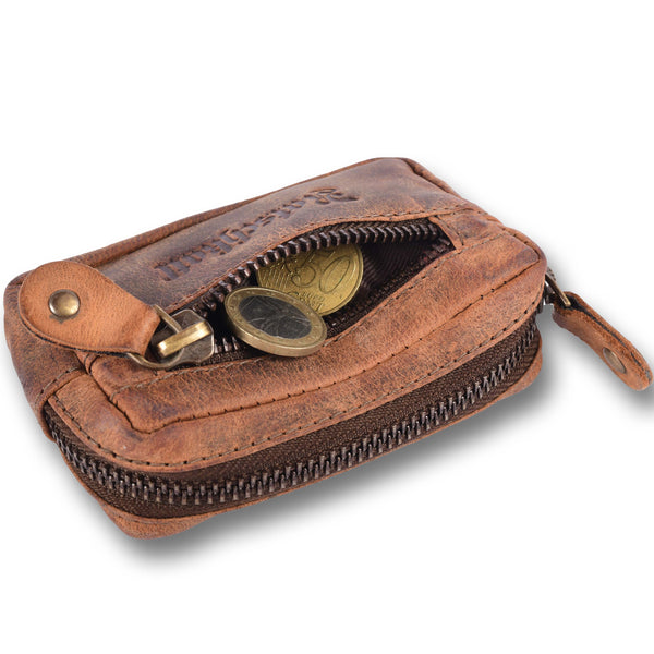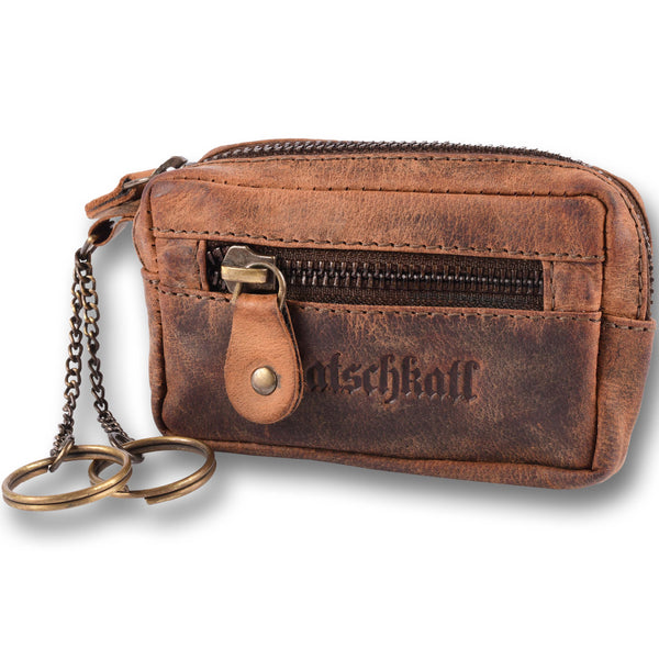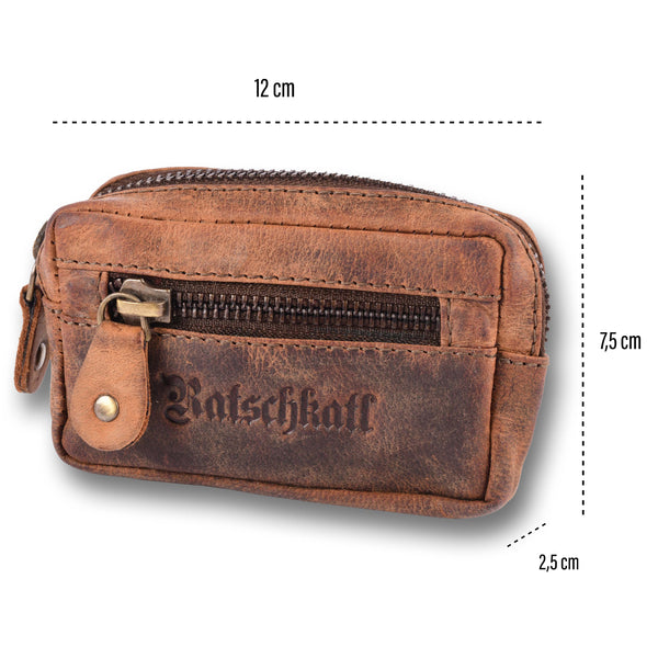 The compact size fits comfortably in any handbag or trouser pocket, while two separate zippered compartments offer space for keys, change, or even a shopping token. The inner lining protects your smartphone or other valuables from scratches. The classic look, combined with the lovingly embossed Ratschkatl pattern, makes Zenzi the ideal addition for anyone who likes to combine style and function.