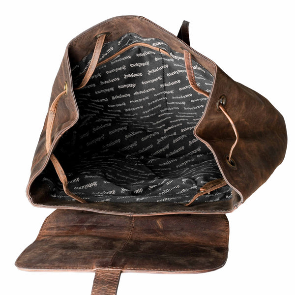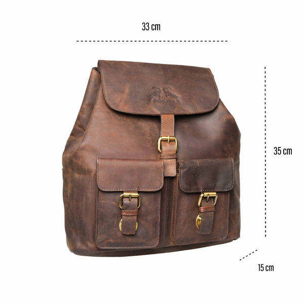 The interplay of robust canvas and striking leather elements gives the backpack its unique vintage charm.