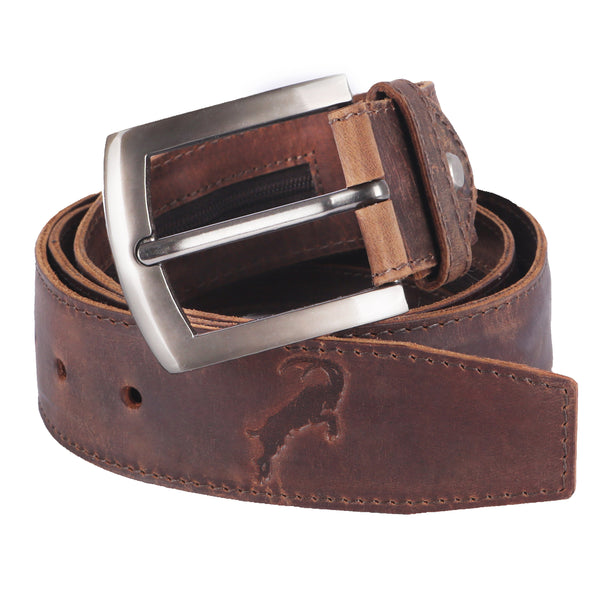The rustic look of this belt makes it the perfect accessory for men with character. The hidden pocket remains invisible but offers extra security when on the go.