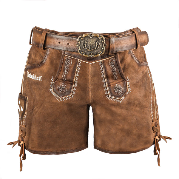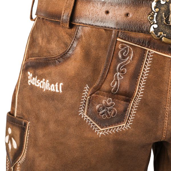 Whether worn with a traditional blouse, a simple T-shirt, or combined with a modern top, the Ratschkatl is versatile. Thanks to its comfortable cut and high-quality leather, it's not only eye-catching but also extremely comfortable to wear. These lederhosen will stick with you through thick and thin—firmly rooted in tradition, yet ready for anything new.