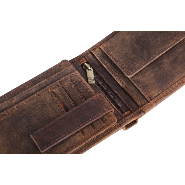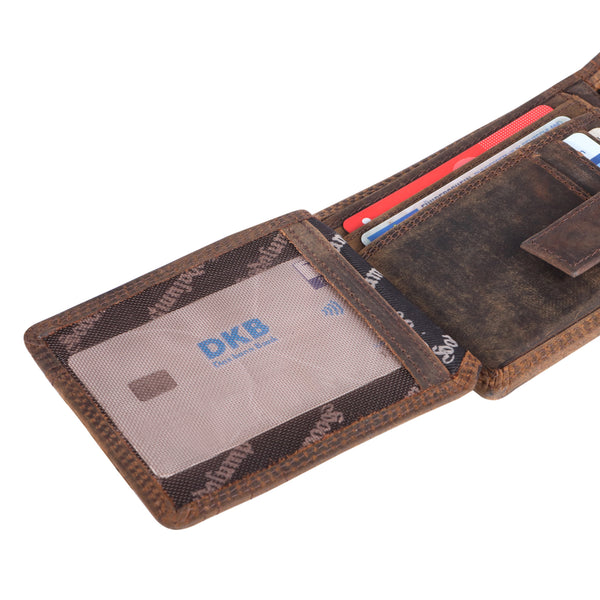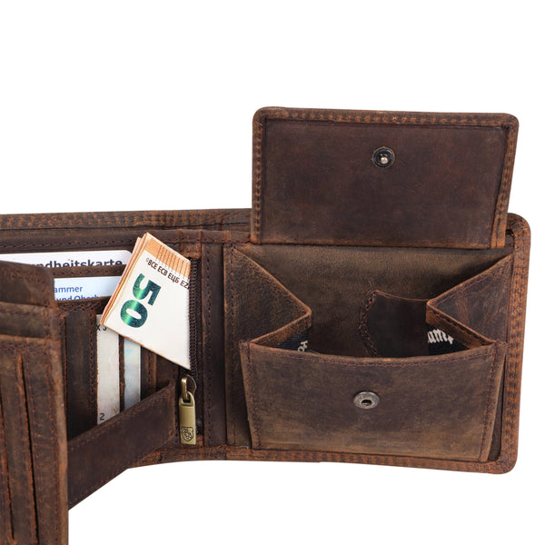 The well-thought-out interior layout offers ample space for everything you need on the go: multiple card slots, a large bill compartment, a coin pocket with a snap fastener, and a window for ID or photos. Thanks to its compact size, the wallet fits comfortably in any trouser or jacket pocket without sacrificing functionality. The natural leather develops a unique patina over time – just like your story.