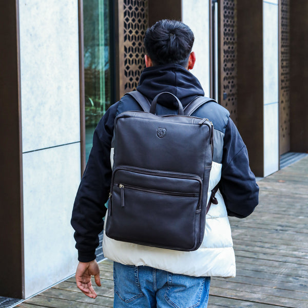 Crafted from durable, high-quality material with genuine leather details, the backpack offers ample storage for a laptop, notebook, water bottle, and more. A padded interior compartment protects your tech, while smaller pockets keep things organized. The sturdy zipper and adjustable strap guarantee comfort and security—even on longer days on the go.