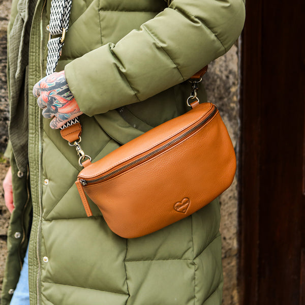 Thanks to the long, adjustable shoulder strap, the bag can be comfortably worn crossbody or over the shoulder. The main compartment has enough space for standard smartphone sizes, while an additional pocket on the back offers space for cards, ID, or some cash. This way, you can carry everything you need with you – without having to lug around a large bag.
