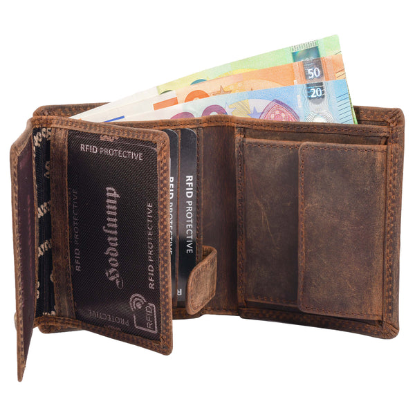 Inside, Guggi impresses with its well-thought-out layout: card slots, a large bill compartment, a lockable coin pocket with a snap fastener, and a view pocket for your ID or driver's license. The compact design sits comfortably in the hand and fits easily into trouser or jacket pockets—perfect for everyday use, leisure time, and on the go.