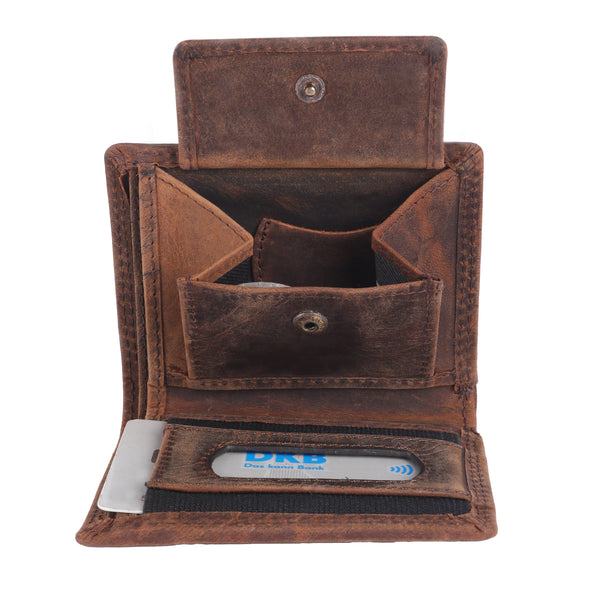 Despite its compact size, the Franz offers plenty of space for cards, bills, and even some small change. It features several card slots, a bill compartment, and a small coin pocket that can be securely closed with a snap fastener. The high-quality leather feels pleasant to the touch and develops a unique patina over time, giving each Slim Franz wallet its own character.
