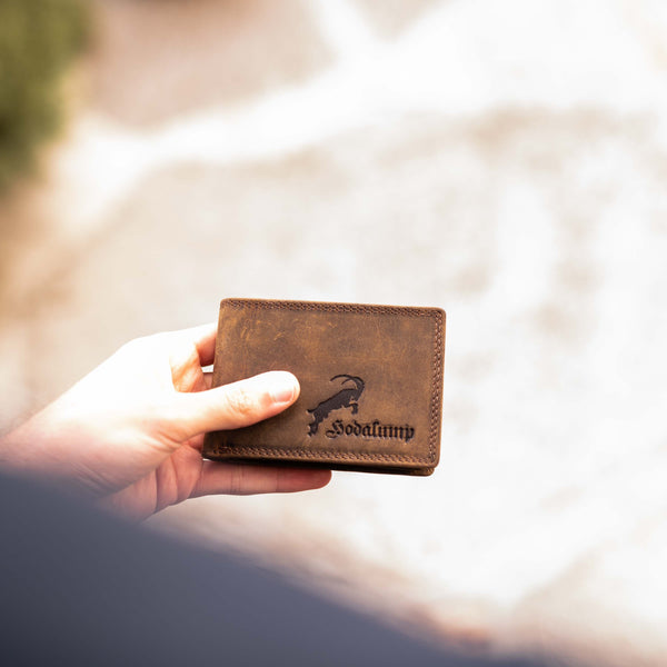 Robustes Büffelleder, saubere Verarbeitung, cooler Steinbock-Print: Die „Buam“ ist eine hochwertige Geldbörse mit Charakter. Karten, Münzen, alles sitzt – und der RFID-Schutz ist on point.