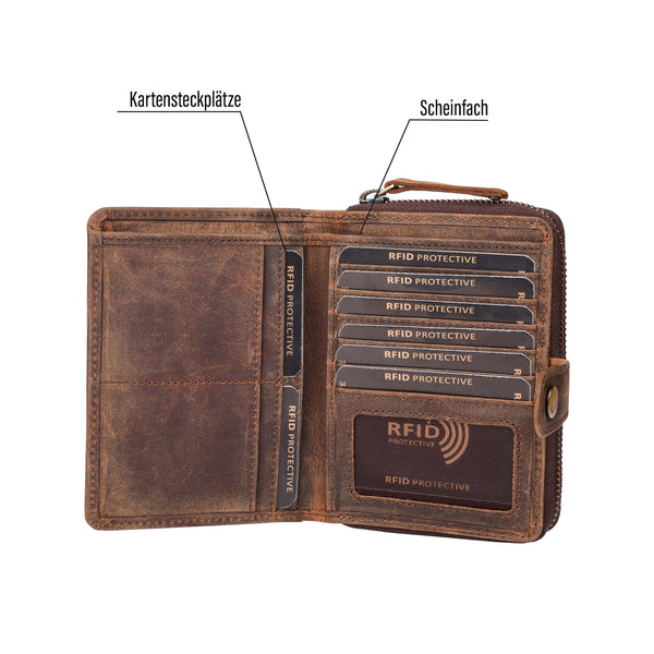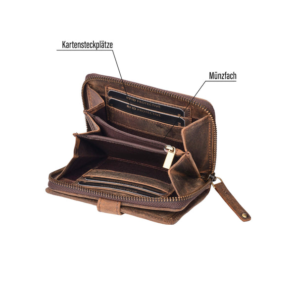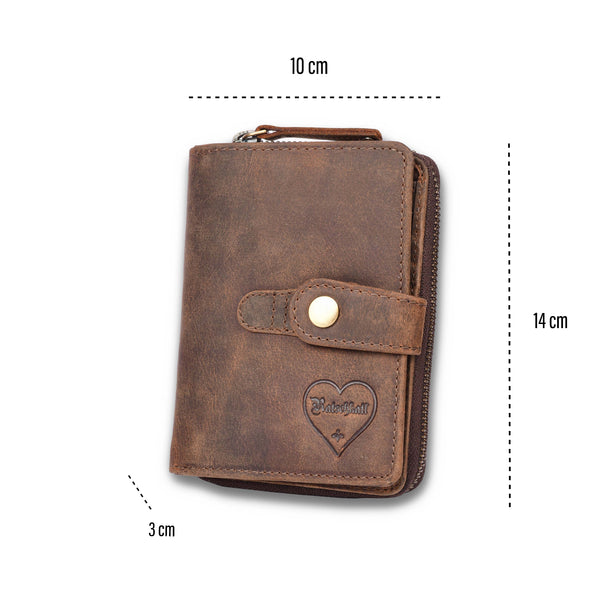 Inside, it impresses with its well-thought-out layout: Several card slots, a large bill compartment, and a separate coin pocket offer enough space for all your essentials. The medium format is perfect for handbags of any size and sits comfortably in the hand—ideal for everyday use and special occasions. A fine mix of rustic leather and feminine details makes the Gigi a true favorite.