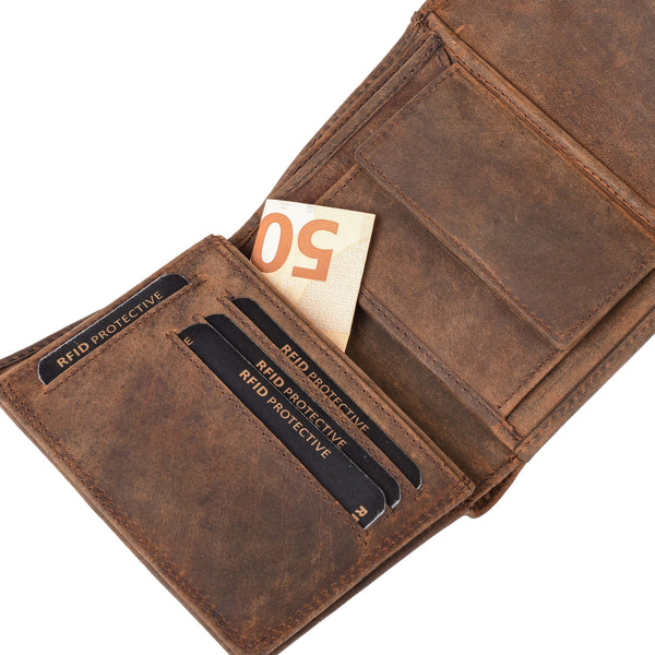It's quite simple: We craft our wallets exclusively by hand from genuine full-grain buffalo leather, considered the most robust leather in the world. We also seal the surface of the wallets using a special sanding technique. As our wallets are used, this creates a vibrant patina that underscores the individual character of this expressive leather.
