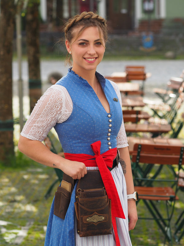 The practical holster with belt loop ensures the set can be carried securely on your body, allowing you to work quickly and easily at any time. The high-quality leather is durable and develops a unique patina over time, making each women's waiter's holster a unique companion.
