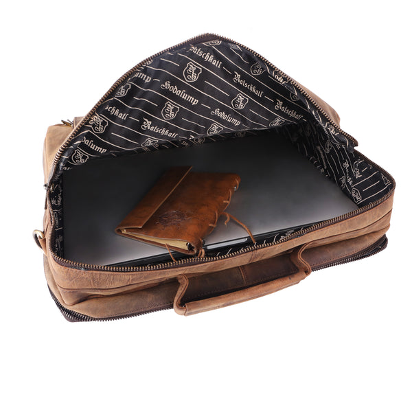 The large Daniel laptop bag combines uncompromising functionality with genuine Hodalump character. Handcrafted from strong, natural buffalo leather, it offers space for all standard laptop sizes (up to 16 inches) – including accessories, documents, and more. Whether in the office, at a client's, or on the go – with Daniel, you'll always be well-organized and stylish.