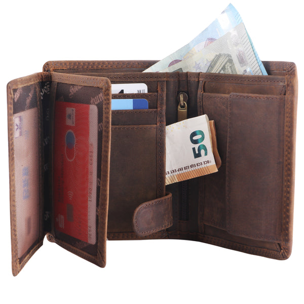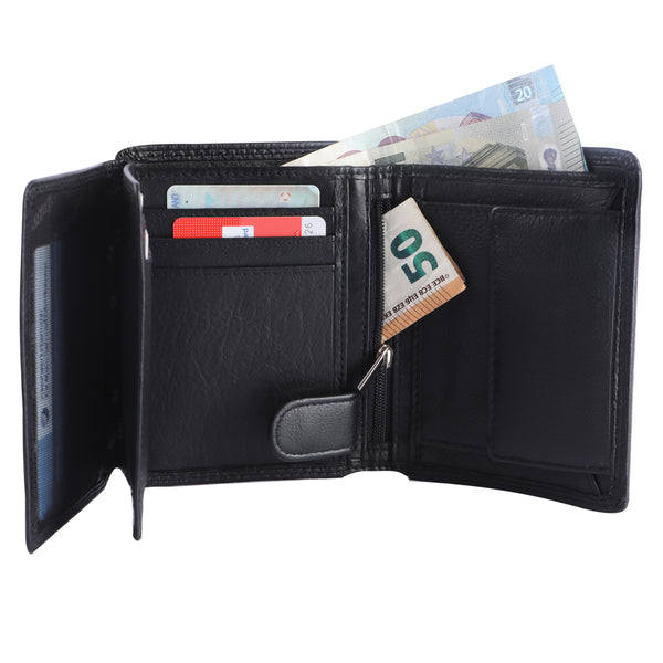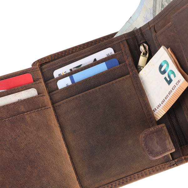 Inside, Lenz impresses with generous storage space: numerous card slots, a coin pocket with a snap fastener, a compartment for banknotes, and a window for ID cards or a driver's license. The snap fastener keeps everything securely together, while the chain can be reliably attached to your pants, belt, or bag – for maximum security while on the go.