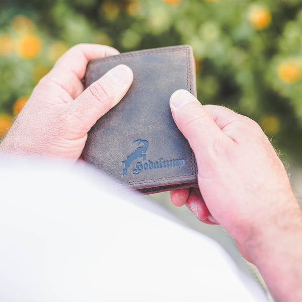 It's quite simple: We craft our wallets exclusively by hand from genuine full-grain buffalo leather, considered the most robust leather in the world. We also seal the surface of the wallets using a special sanding technique. As our wallets are used, this creates a vibrant patina that underscores the individual character of this expressive leather.