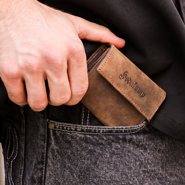 Das ist ganz einfach: Wir fertigen unsere Geldbeutel ausschließlich per Hand aus echtem vollnarbigen Büffelleder, welches als das robusteste Leder der Welt gilt. Zusätzlich versiegeln wir durch die besondere Schleiftechnik die Oberfläche der Geldbeutel. Während der Verwendung unserer Geldbeutel entsteht dadurch eine lebendige Patina die den individuellen Charakter dieses ausdrucksstarken Leders unterstreicht.