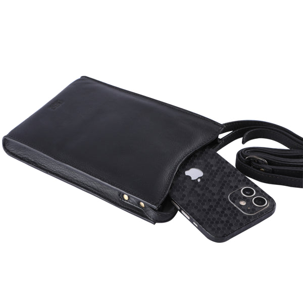 Thanks to its minimalist format, it fits virtually any standard smartphone – from iPhones to Android devices. The soft inner lining protects against scratches, while the magnetic closure ensures a secure hold. The adjustable shoulder strap makes it particularly comfortable to wear – whether worn crossbody or loosely over the shoulder. A small additional compartment for cards or banknotes is also integrated.