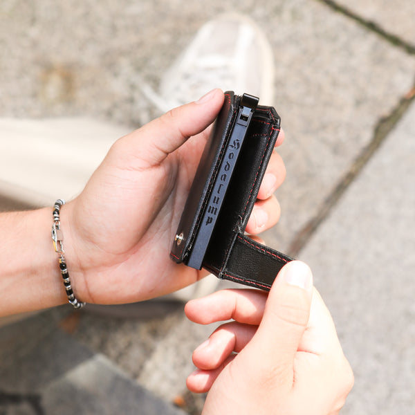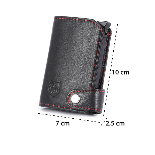 The Hodalump Black/Red card case represents what truly matters: quality, clarity, and functionality. Crafted from the finest genuine leather, it combines a slim format with sophisticated organization—ideal for those who want to carry only the essentials without sacrificing style. Whether for everyday use, traveling, or going out—this case fits in any bag and matches any outfit.