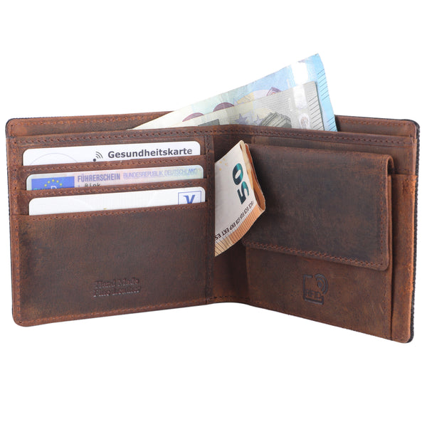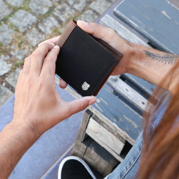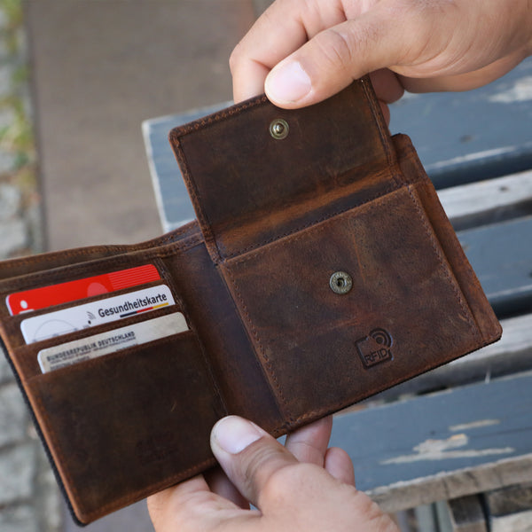 It's quite simple: We craft our wallets exclusively by hand from genuine full-grain buffalo leather, considered the most robust leather in the world. We also seal the surface of the wallets using a special sanding technique. As our wallets are used, this creates a vibrant patina that underscores the individual character of this expressive leather.