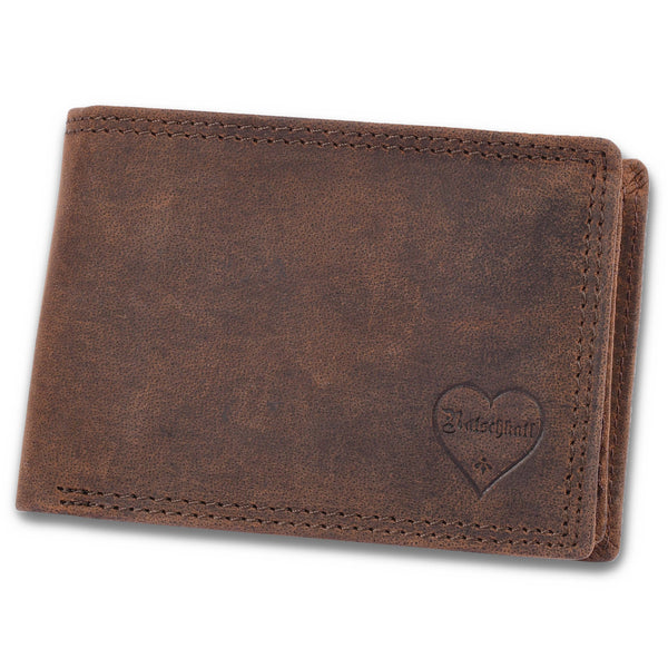 The Madl jeans wallet is the perfect blend of Bavarian charm, modern everyday practicality, and high-quality craftsmanship. Crafted from genuine, oiled leather with a vintage look, its compact size fits in any handbag, dirndl apron, or trouser pocket—ideal for on the go, at a folk festival, or a stroll through town.